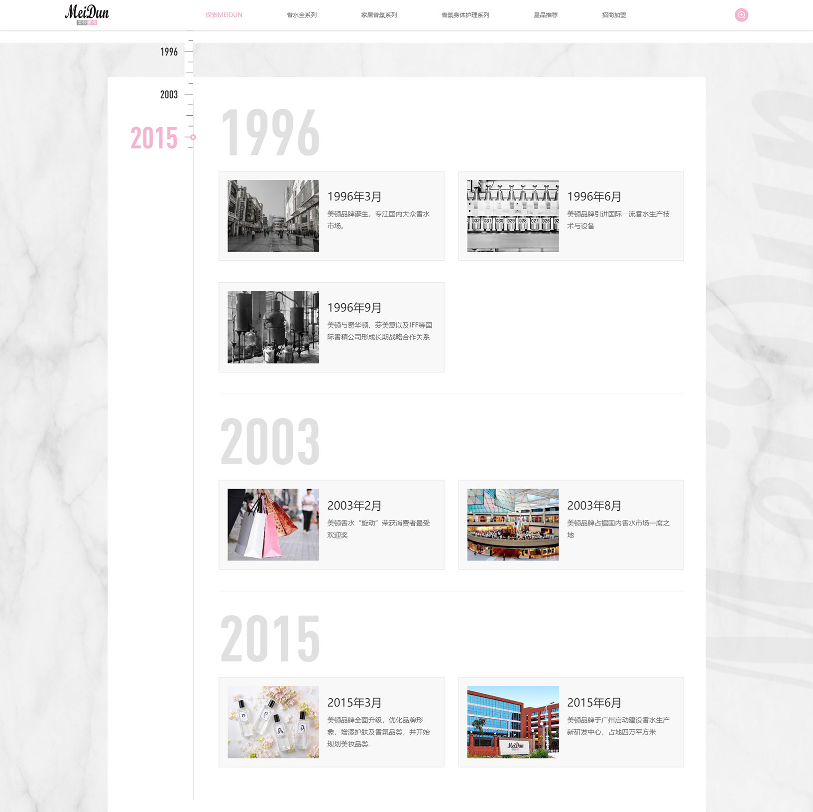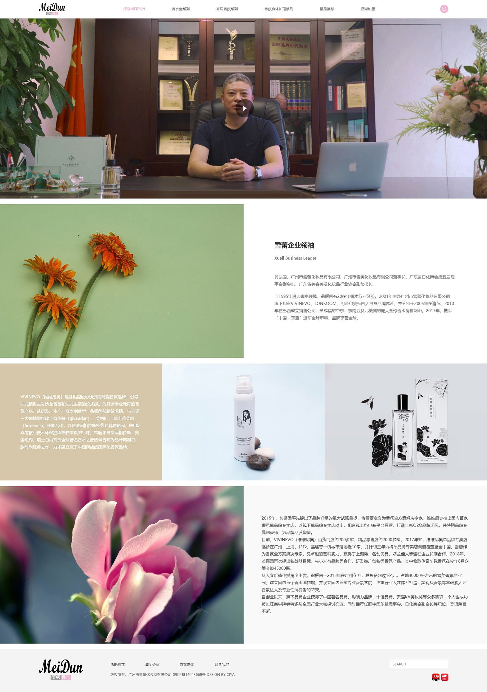 品牌始創(chuàng)于上世紀(jì)九十年代,作為國內(nèi)第一批品牌香水,見證了中國香水市場的發(fā)展和崛起。美頓品牌以香水成品的生產(chǎn)研發(fā)為核心,堅(jiān)持獨(dú)立開發(fā)及創(chuàng)新調(diào)香,發(fā)展了獨(dú)特的流通成品香水文化,占據(jù)國內(nèi)香水市場的一席之地。以源自法國的時(shí)尚香水理念及國際水平的香水研發(fā)實(shí)力和生產(chǎn)工藝,開發(fā)了以“旋動(dòng)”為經(jīng)典款的一系列廣受大眾香水愛好者歡迎的香水產(chǎn)品。